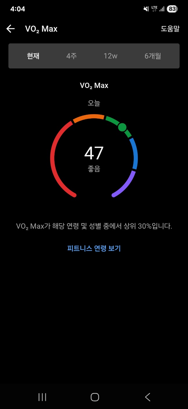 그리고 지금은 VO2max수치가 47이 나왔죠.