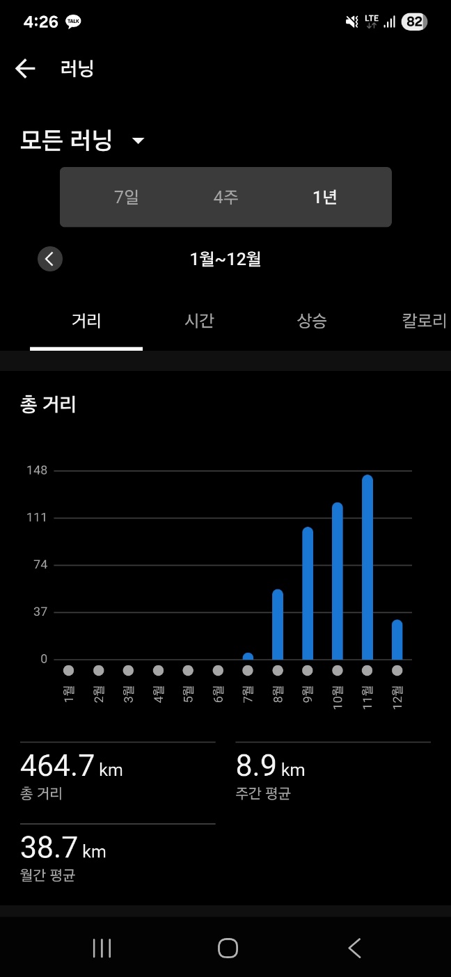 그러곤 날씨가 풀리면서 거리량을 조금씩 늘렸습니다.