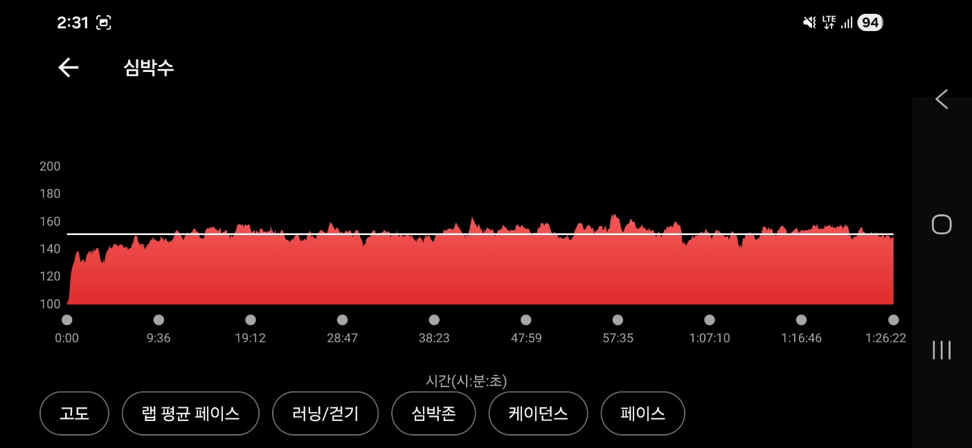 - 시간 : 1시간 이상도 무리 없다. 다만 워밍업과 쿨다운은 철저히.