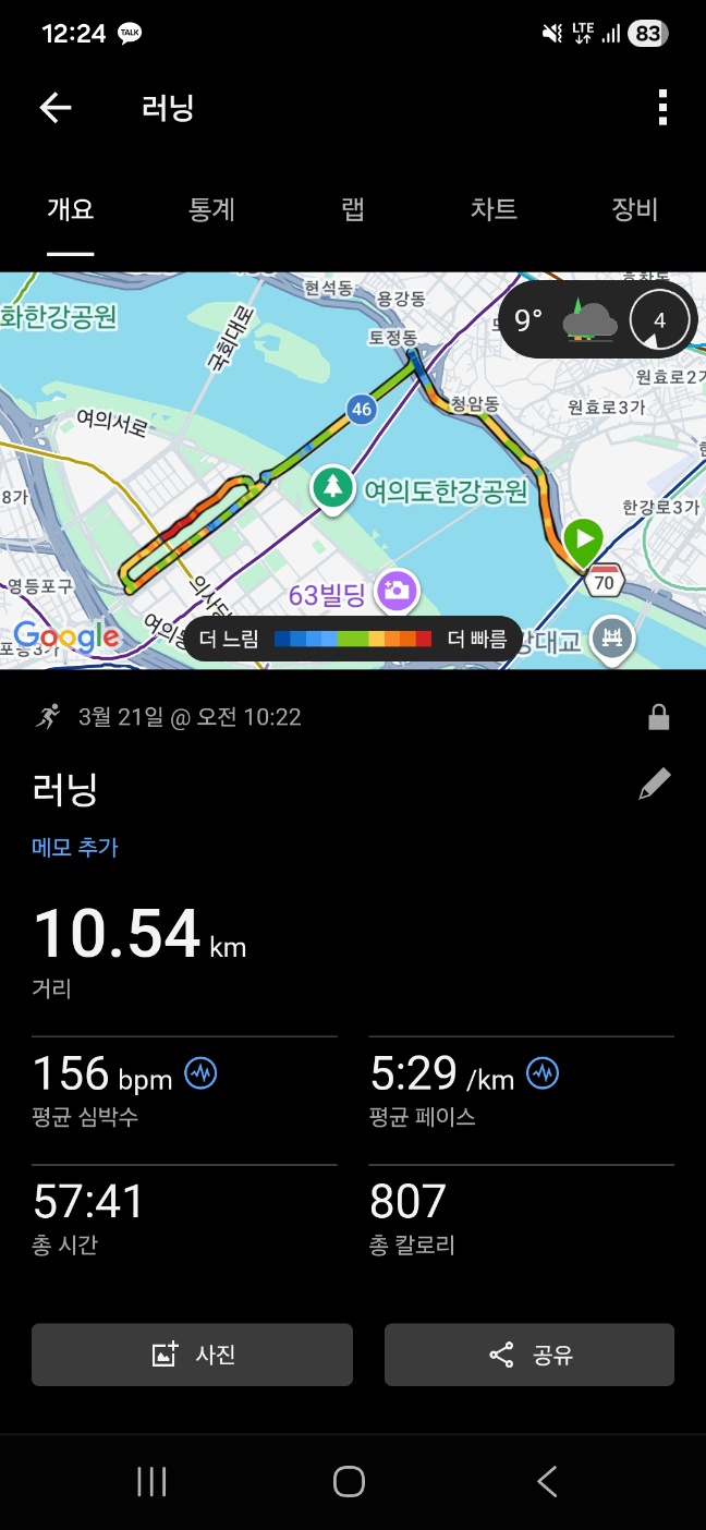 몸이 무겁고 다리가 뻐근한 날에도 기록 앱에 10km가 찍혀야 운동한 것 같았습니다.